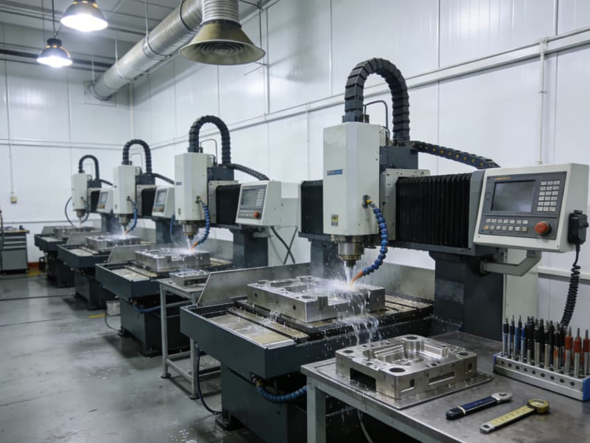 白色墻面采用工業(yè)級潔凈涂層,無縫拼接搭配圓弧陰陽角設(shè)計,杜絕積塵死角,減少粉塵對模具精度的影響。車間劃分加工區(qū)、檢測區(qū)、調(diào)試區(qū)等功能區(qū)域,布局科學(xué)合理,加工區(qū)增設(shè)阻尼減震墊層降低設(shè)備振動干擾,檢測區(qū)預(yù)留精密儀器安裝位與恒溫調(diào)控接口,各區(qū)域均配備標準化管線預(yù)埋與設(shè)備固定點位,全方位保障模具制造的精準性與穩(wěn)定性。