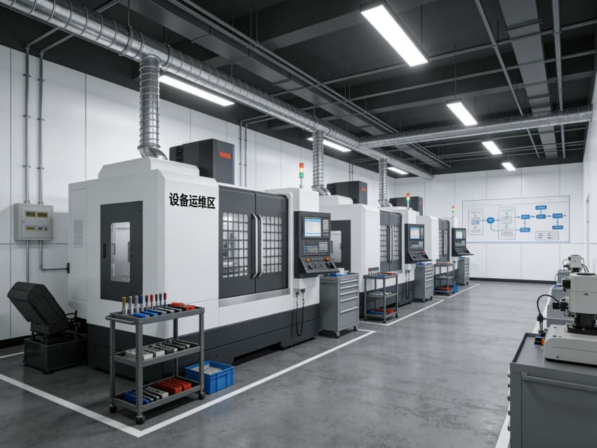 配套的物料倉儲(chǔ)區(qū)采用重型貨架規(guī)范存放各類工裝夾具與半成品,實(shí)現(xiàn)物料的快速調(diào)取與流轉(zhuǎn);“設(shè)備運(yùn)維區(qū)” 配備專業(yè)維保團(tuán)隊(duì)與工具車,定期對(duì) CNC 設(shè)備進(jìn)行校準(zhǔn)與養(yǎng)護(hù),確保設(shè)備長期處于高精度運(yùn)行狀態(tài)。