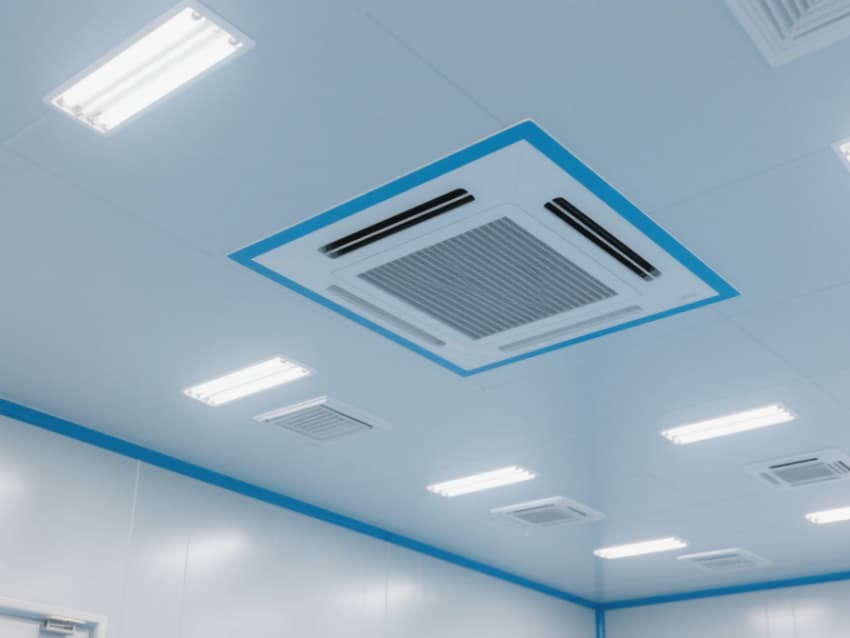 車間內部呈現開闊格局,地面為無縫PVC卷材,圓弧角設計避免衛生死角。頂部密布高效送風口與LED潔凈燈,形成均勻的層流氣流組織,滿足萬級潔凈標準。?