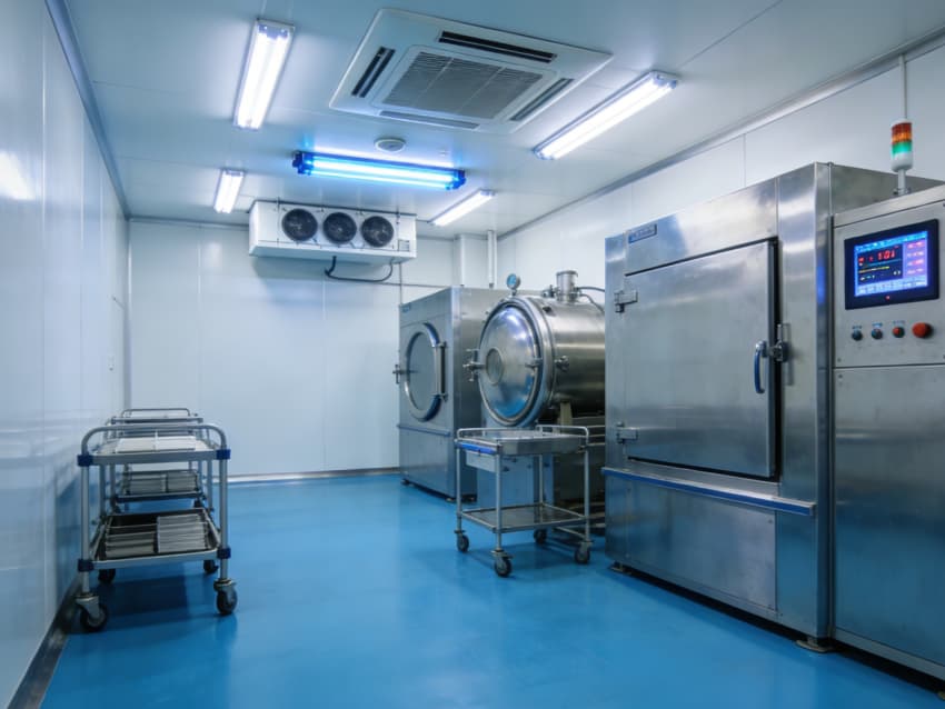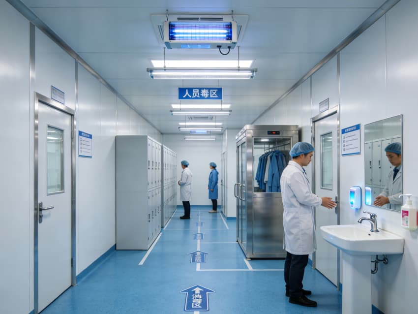白色墻面采用食品級潔凈抗菌涂層,推行無縫拼接與高精度找直工藝,陰陽角采用R50圓弧倒角設計,徹底消除清潔死角,潔凈度穩定達到Class 7級標準。廠房科學劃分無菌裝配區、滅菌區、檢測區等核心區域,各區域配備獨立層流凈化與負壓防護系統,裝配區預留恒溫恒濕調控接口,滅菌區設置專用物料傳遞通道,全方位保障生產全流程的無菌性與合規性,為高品質無菌醫療器械生產筑牢環境基礎。
