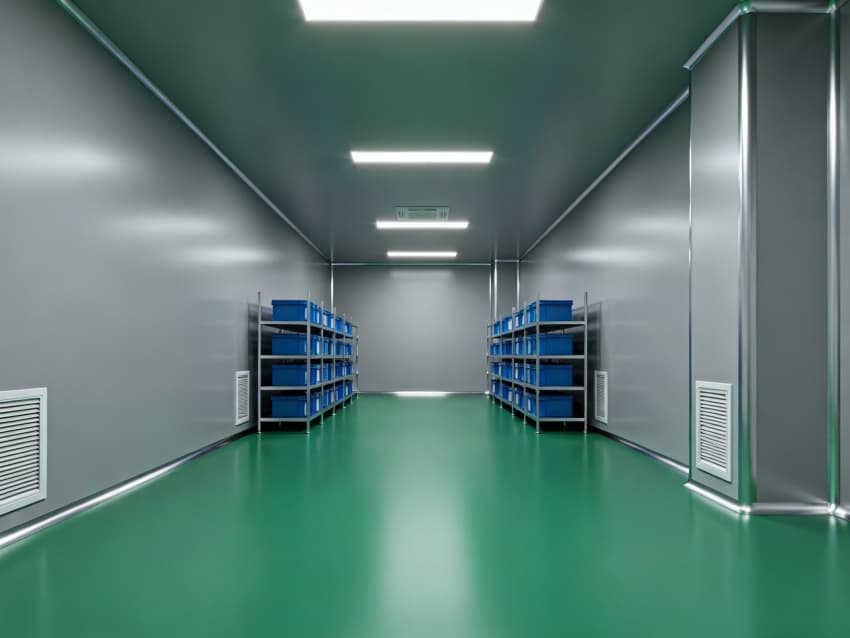 萬級:可選用PVC卷材或聚氨酯地坪,重點保障無縫隙與耐磨易清潔,電阻值滿足10?-10?Ω即可,基層打磨找平后含水率需≤8%再施工。?