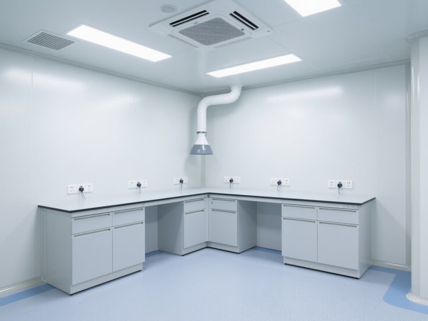空間配備不銹鋼實驗臺基礎框架,預留耐腐蝕試劑架與電源接口,嵌入式LED燈帶提供400lux均勻照明。恒溫恒濕系統精準控制溫度(20-24℃)與濕度(50-60%),潔凈門窗采用雙層鋼化玻璃,兼顧密封性與觀察便利性,全方位保障實驗數據的準確性與可靠性。